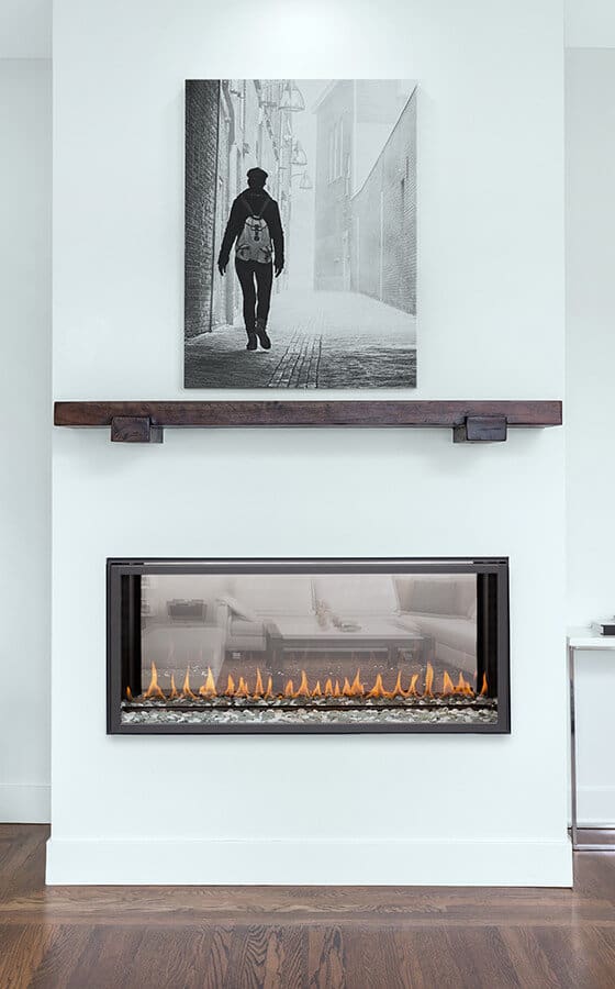 The Exemplar See Through – balanced design in elegant proportions. The R320ST See through power vent dedicated fireplace characterized by a generous landscape viewing area and linear burner. Rock or tile can be installed over the firebox frame for a clean minimalist look.